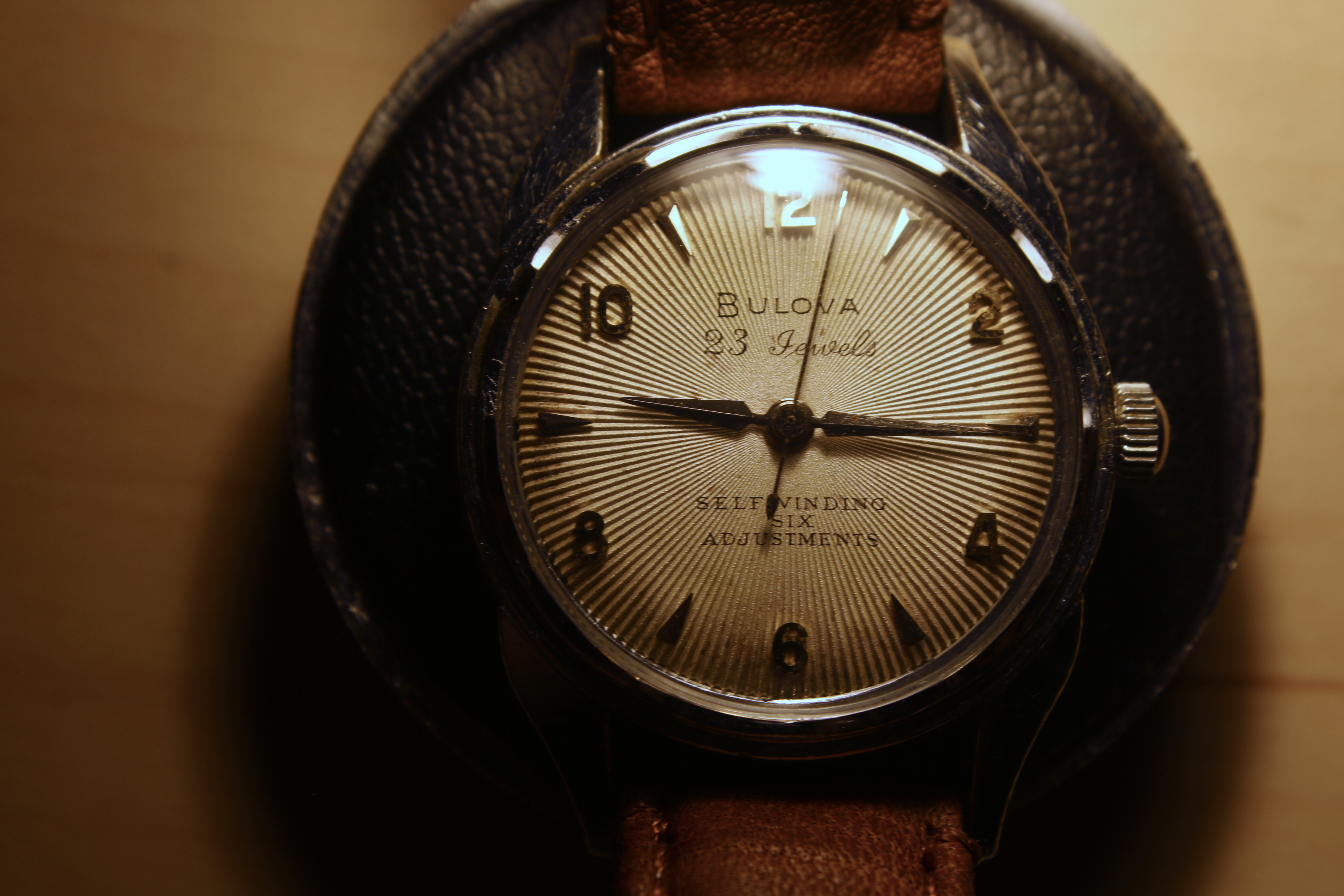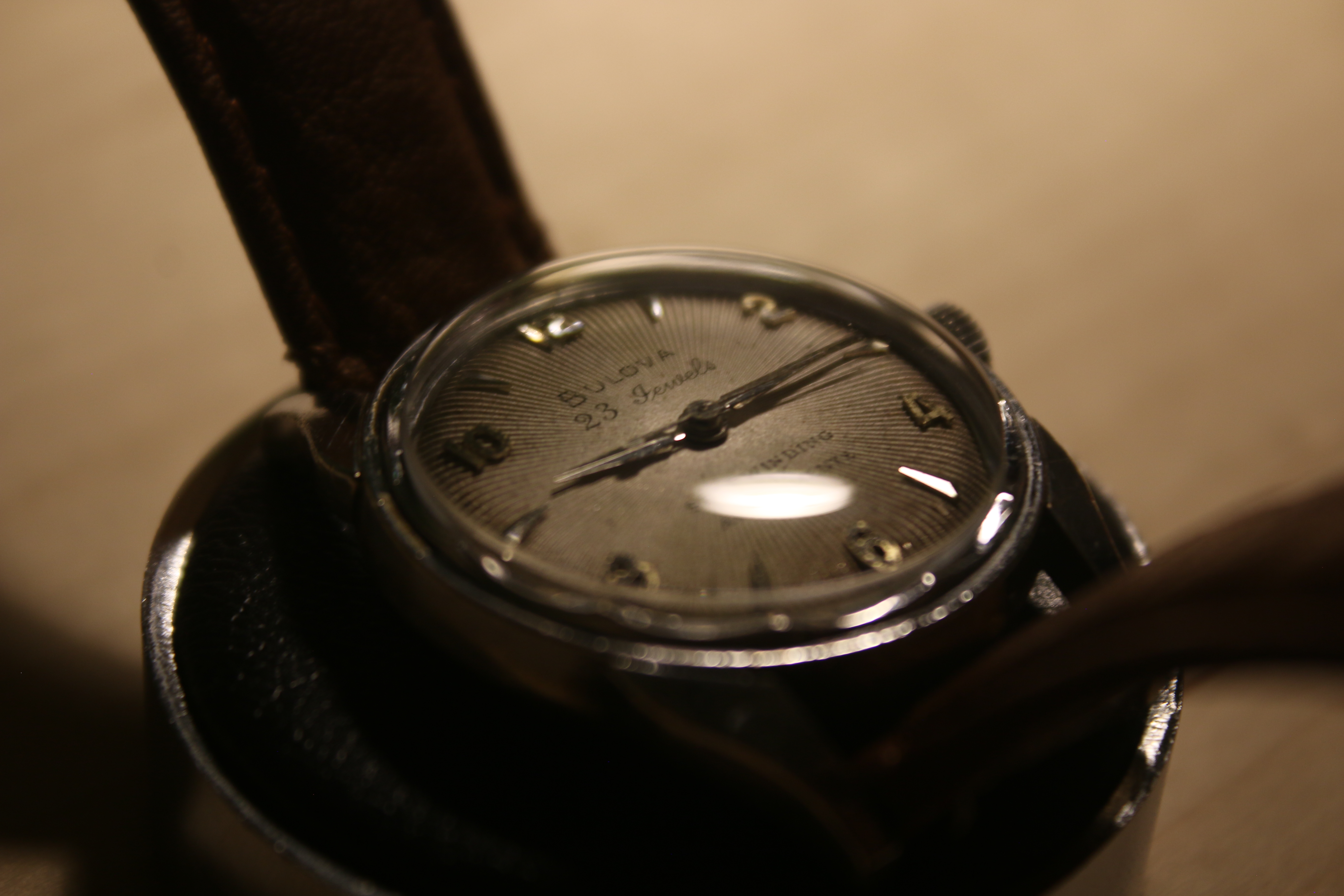 One of the watches that my father inherited that I have grown quite fond of is this little Bulova model 23. It is date code of 1956, and looks to match. When I got it, the acrylic crystal was quite heavily beat up and had a crack in it. Even ignoring the water-resistance issue that the crack introduced, I really wanted to replace the crystal so that the full beauty of the dial can be seen. Acrylic crystals are very cheap and easy to source, as long as you have the right measurements. This proved difficult apparently, as it took 3 tries to get the right crystal. The first time, it was completely my fault as I had incorrect measurements. You live and you learn. The second time, I ordered 2 crystals which were closest to my measurement. The smaller one was too small, and the bigger one was... even smaller??? It turns out that the seller mis-labeled the bigger one, so I had to get a refund and order another. This time, it fit perfectly. In order to install the crystal, I made a makeshift Robur Press. It presses on specific parts of each side of the crystal in order to make the radius slightly smaller, allowing you to slip the case around it, and then release the tension for the crystal to expand and create a (in theory) watertight seal. I was able to make my own press using some specially designed 3d-printed dies hot-glued to a mini vise. In the future I intend to service and clean the movement of this watch, as there are some signs of corrosion/rust.